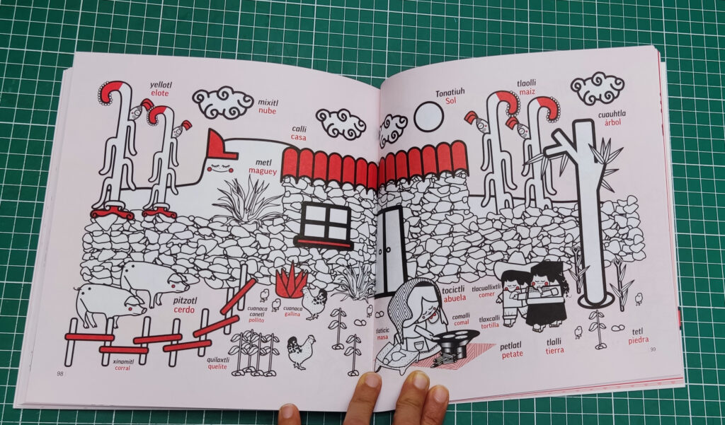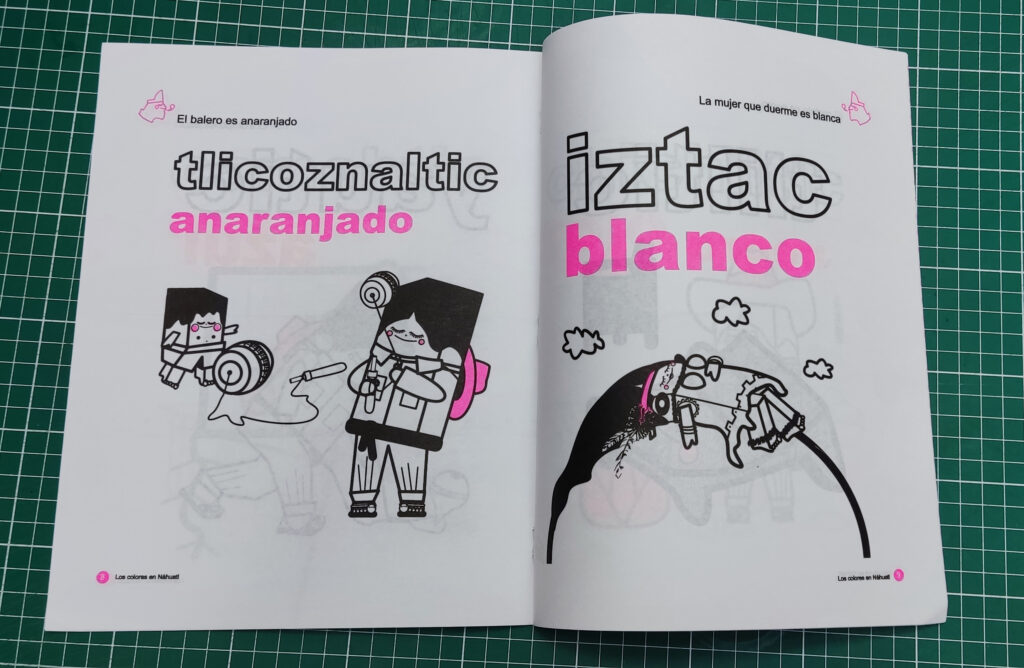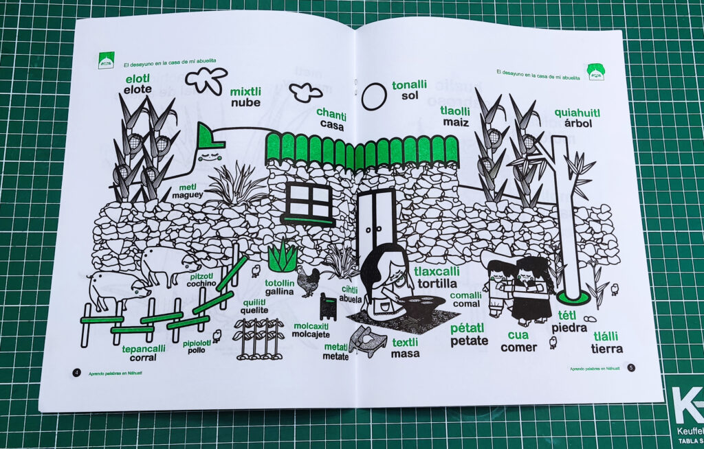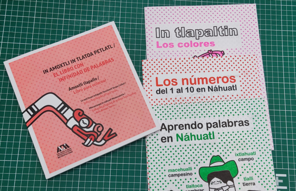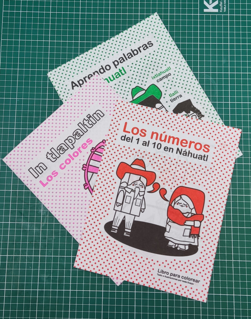 Así, surgió la idea de crear una colección de sencillos libros para colorear con un vocabulario básico en lengua náhuatl, la lengua de mis abuelos. Los libros, de edición limitada, iniciaron su viaje por el tiempo y el espacio.