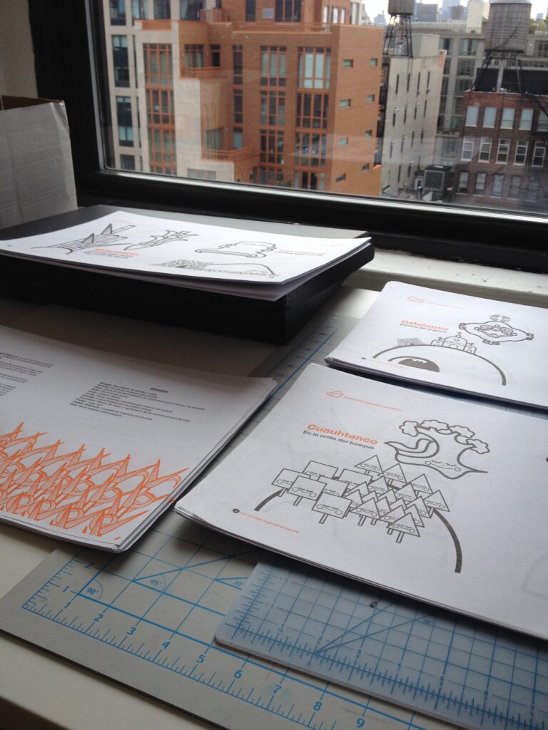 Nuestro sello editorial tiene sus orígenes en NY, ciudad en la que viví por casi once años y en la que desarrollé gran parte de mi trabajo y estilo gráfico. En esa época, Malacateticpac, el cículo de cerros, ocupaba el centro de mi inspiración y redescubrimiento de la identidad que todavía palapaba visible en el paisaje, objetos, alimentos, personas y lengua náhuatl.
